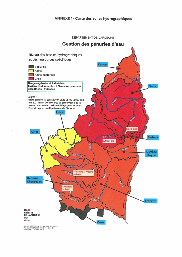 Désormais, le bassin versant de l’Eyrieux est placé en niveau de gravité « crise ».