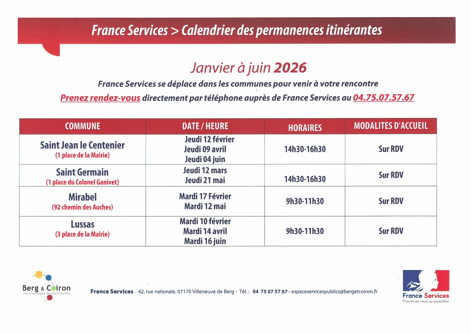 Prise de rendez-vous obligatoire au 04 75 07 57 67 ou espaceservicespublics@bergetcoiron.fr